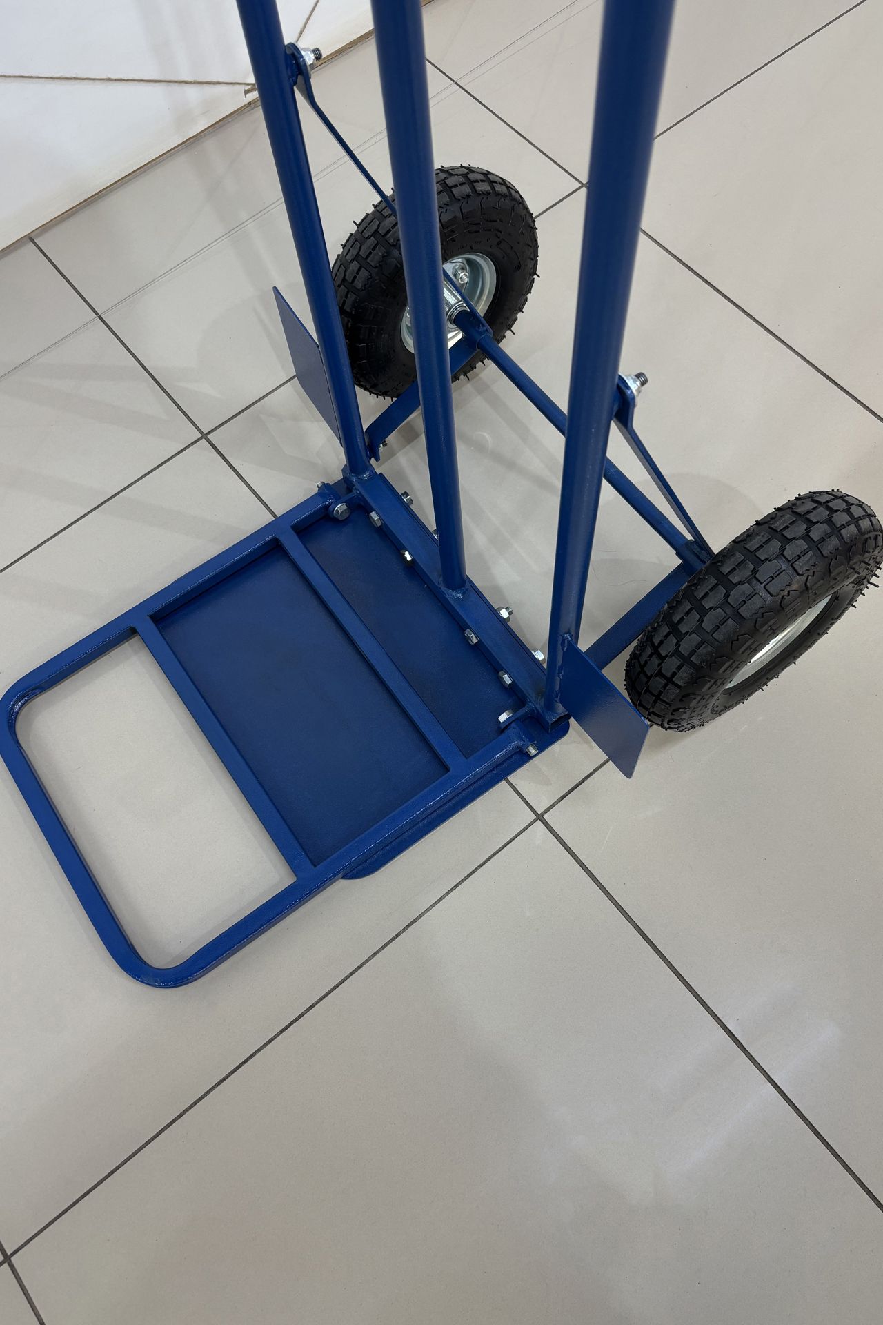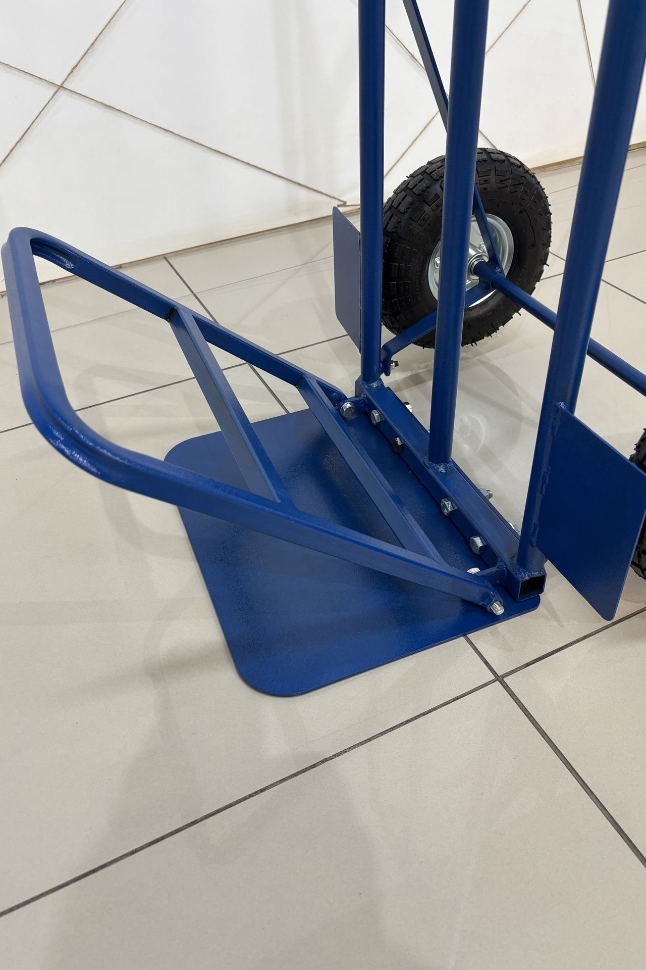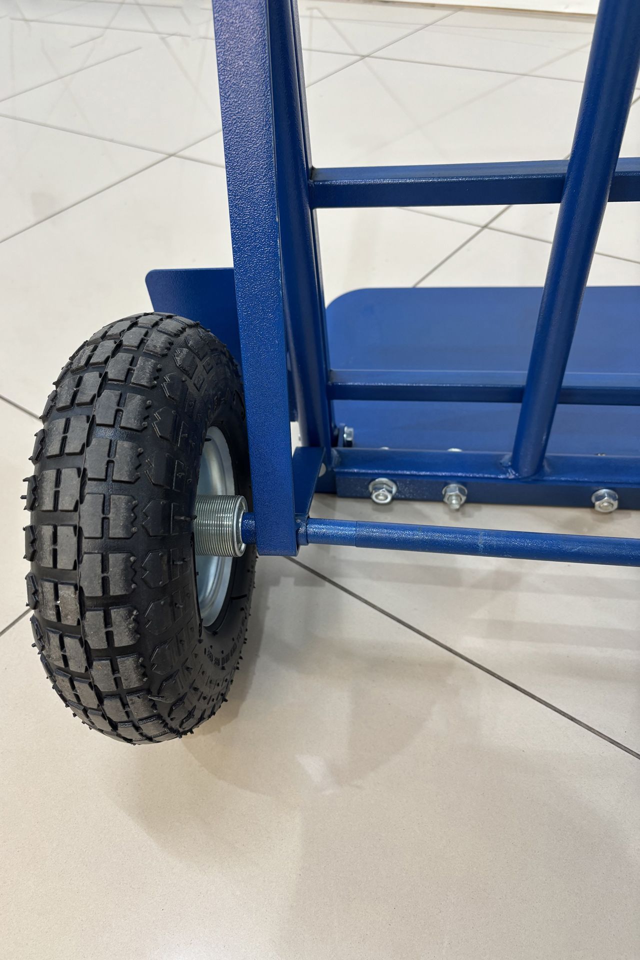 Тележка грузовая позволяет легко перемещать грузы. Каркас выполнен из стальной трубы диаметром 25 мм.Надувные колеса диаметром 260 мм сглаживают небольшие неровности во время перевозки груза, оснащены подшипниками.