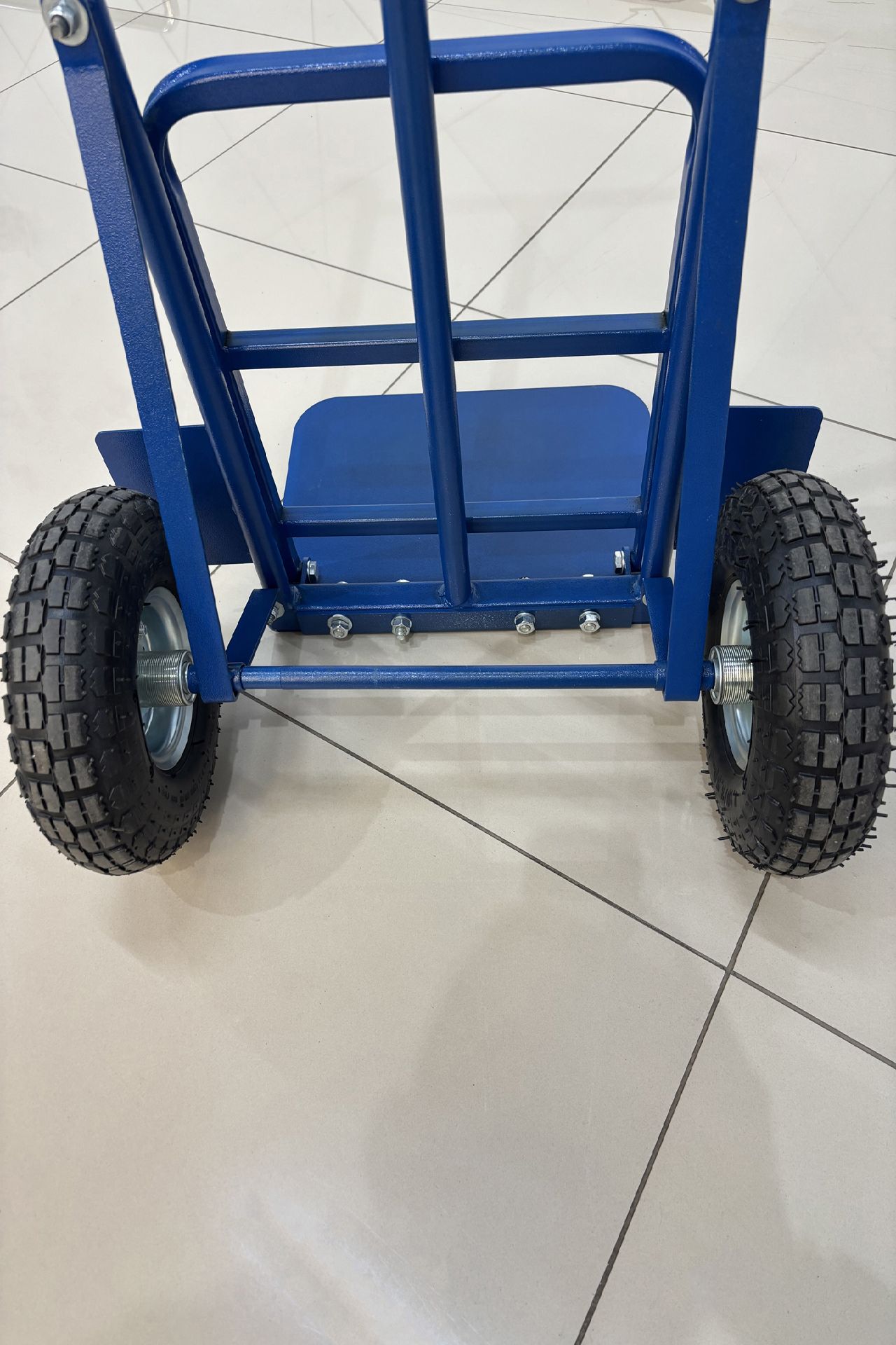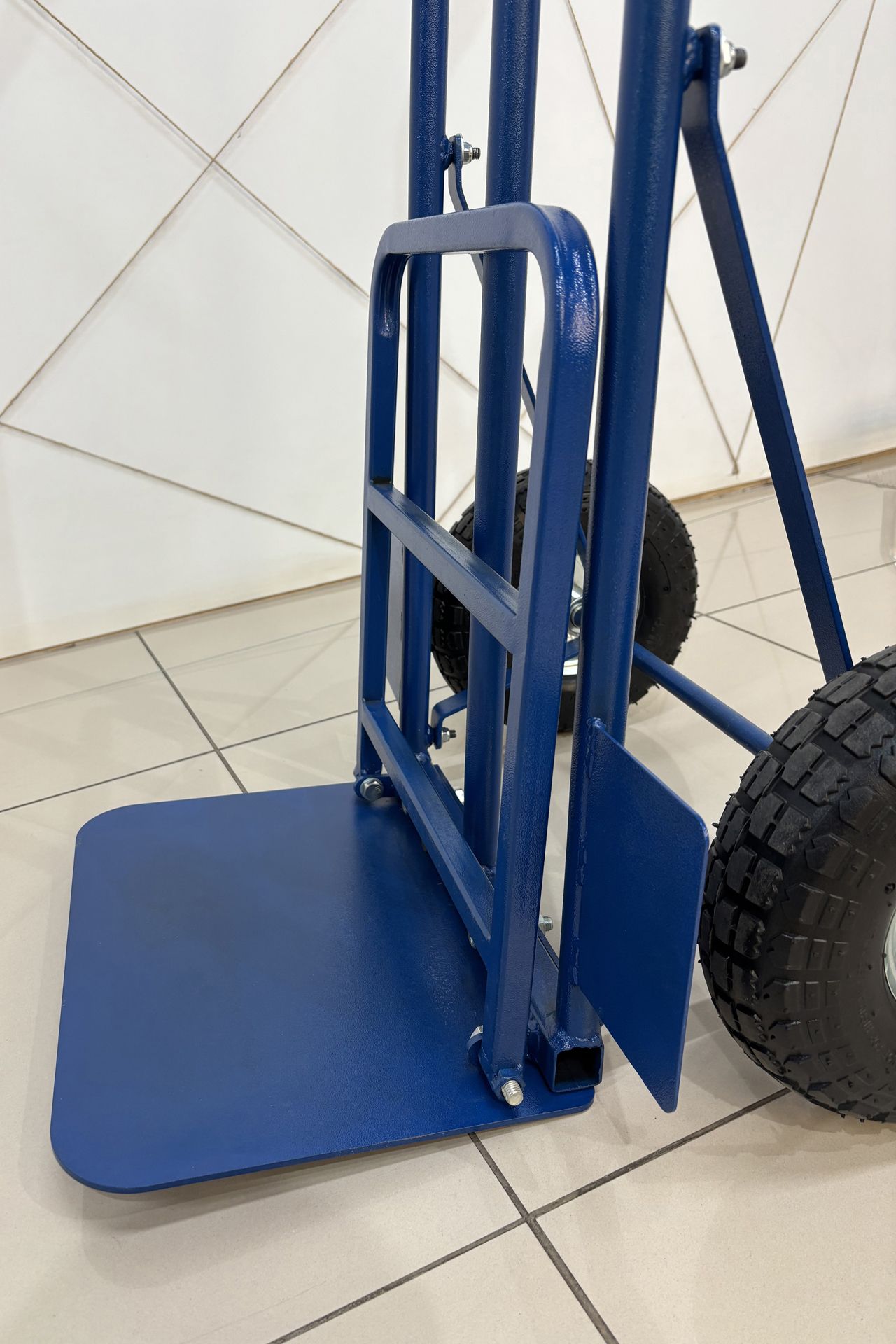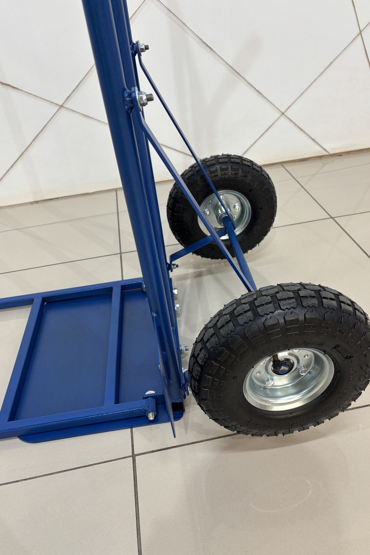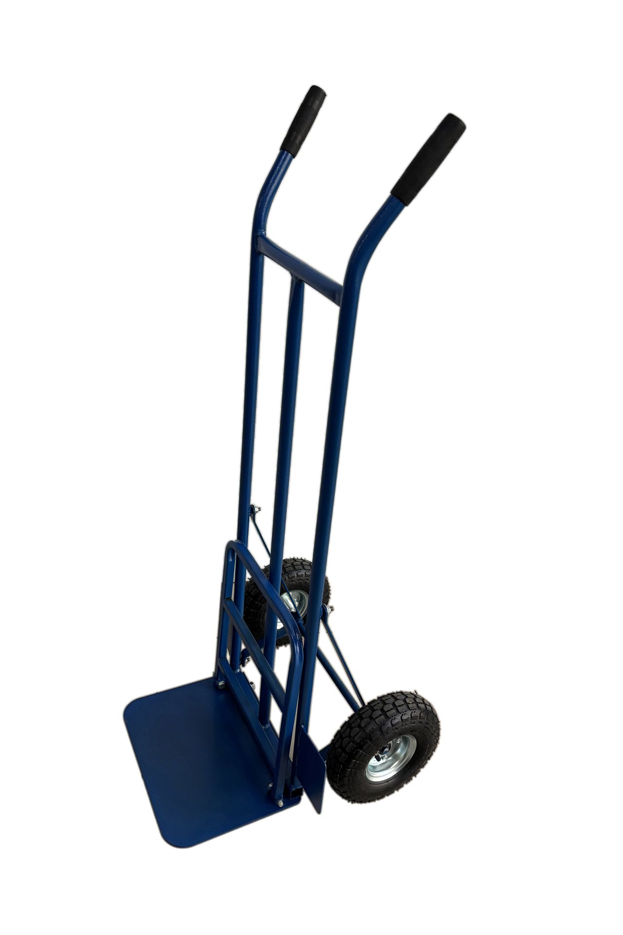 Тележка грузовая позволяет легко перемещать грузы. Каркас выполнен из стальной трубы диаметром 25 мм.Надувные колеса диаметром 260 мм сглаживают небольшие неровности во время перевозки груза, оснащены подшипниками.